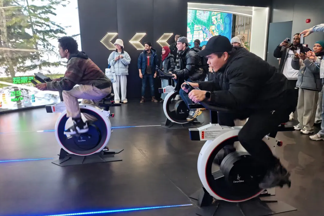 Participants experience the area's high-tech products. [Photo/WeChat account of the Shanghai Lin-gang Xinpianqu Investment Holding (Group)]