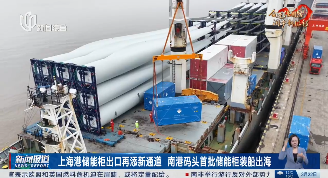 上海港储能柜出口再添新通道 南港码头首批储能柜装船出海