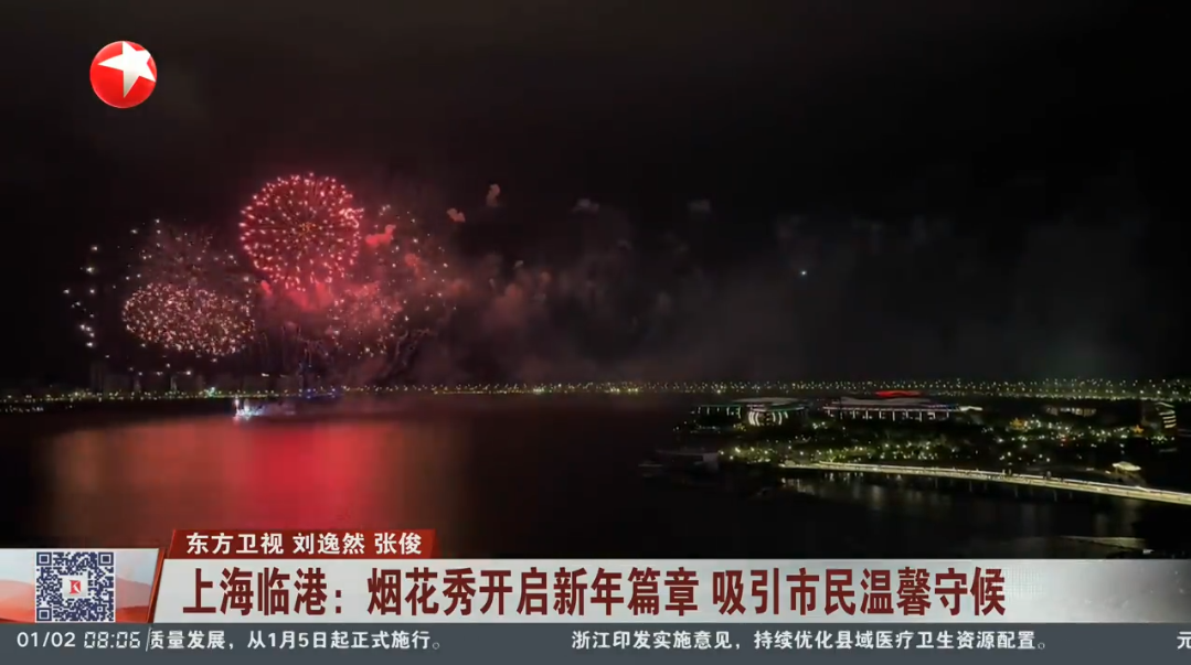 上海临港:烟花秀开启新年篇章 吸引市民温馨守候