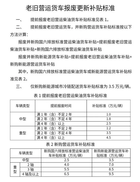 ● 报废更新货车符合以下条件的,车辆所有人可以申请资金: