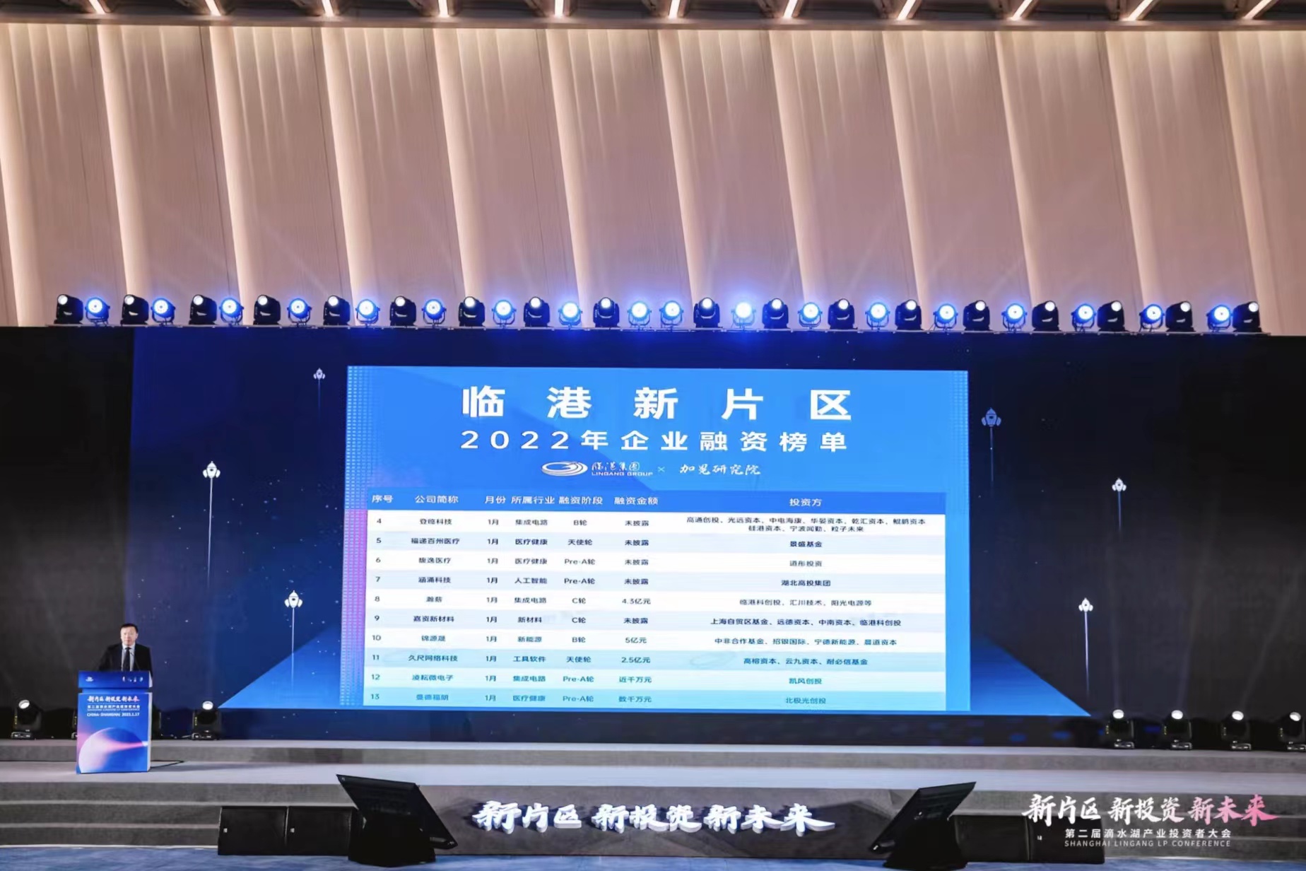 活动现场,临港集团联合加冕研究院重磅发布《2022年临港新片区企业融资榜单》,该榜单通过分析热点项目投融资数据表现,把握临港新片区科创风向,窥见企业和行业发展纵深。