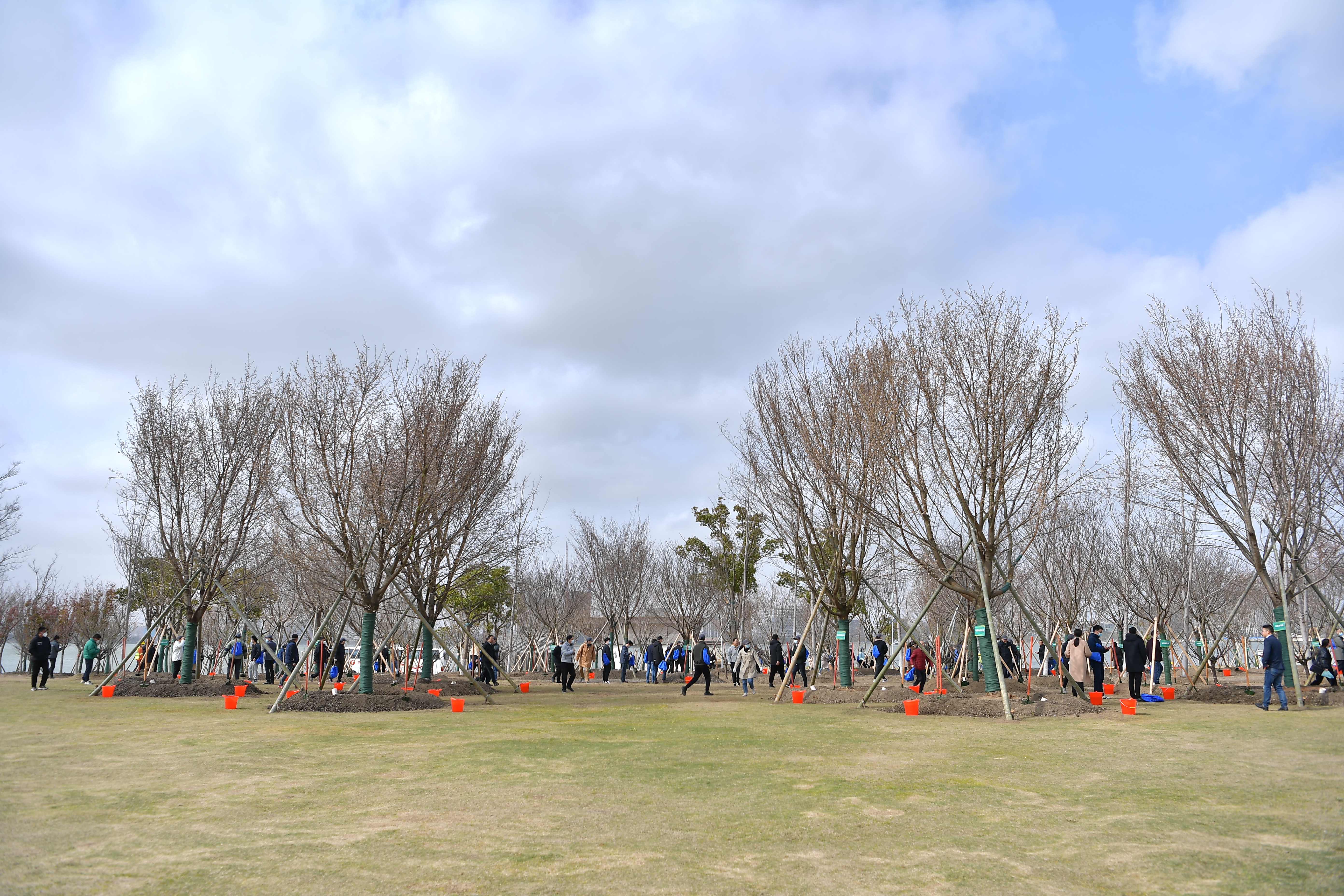 本次植树造林主活动位于滴水湖北岛,共植樱花、朴树等乔木70余株,结合现有乔木资源,整体形成森林面积约3.7亩。活动现场,三人成组、五人成团,在工作人员的指导下齐心协力种下一株株新苗,用实际行动倡导爱绿、植绿、护绿的良好风尚。