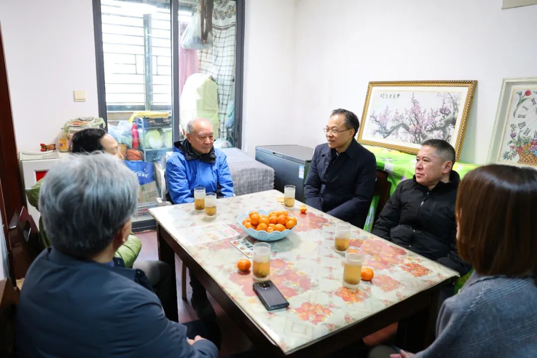 陈金山一行又来到申港社区宜浩佳园小区,亲切看望了困难党员王世荣一家,向他们致以亲切的问候和新春祝福。陈金山详细询问了老人的身体状况及生活情况,嘱咐居委干部要加强日常走访关心,切实帮忙解决实际困难。