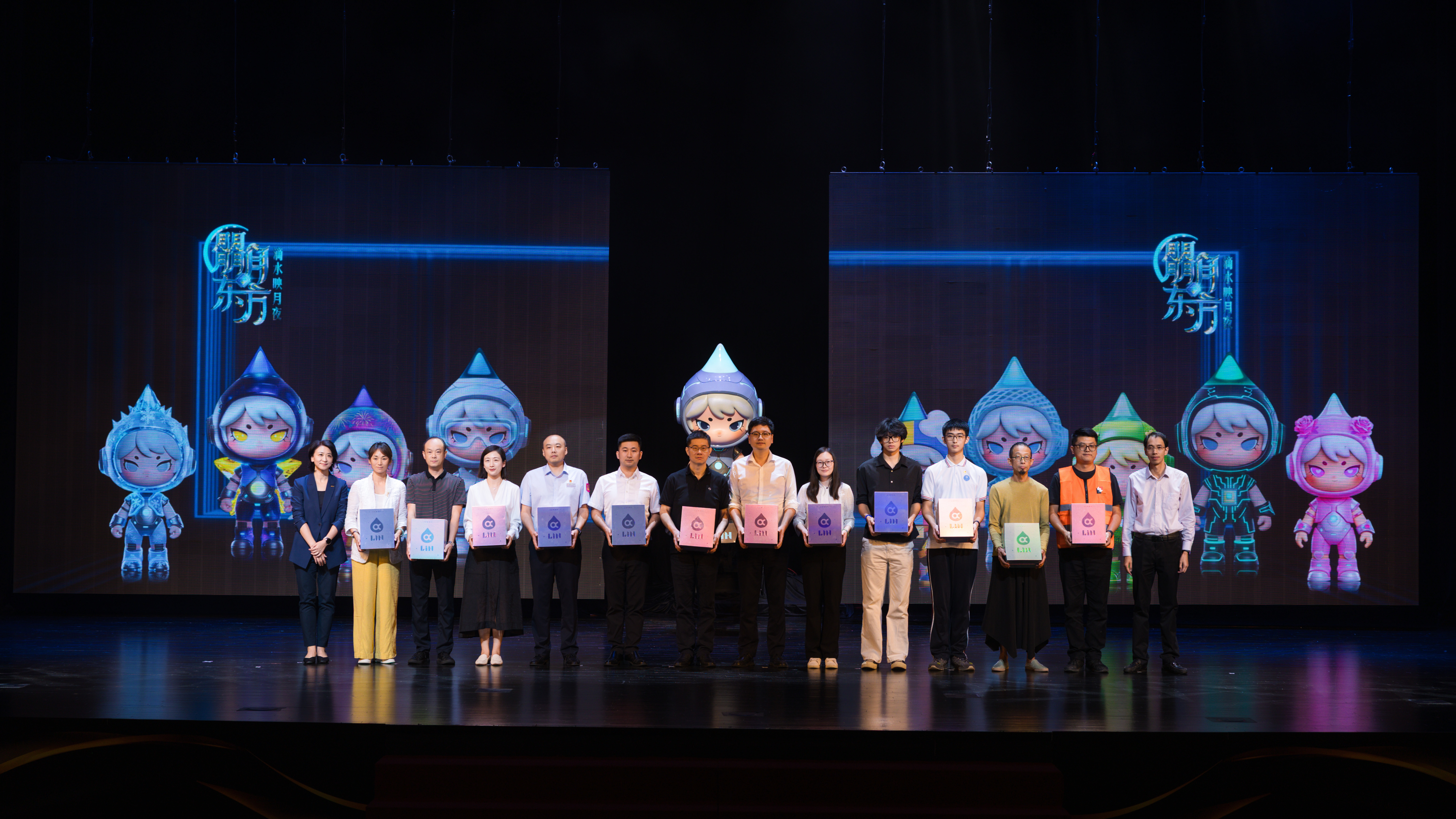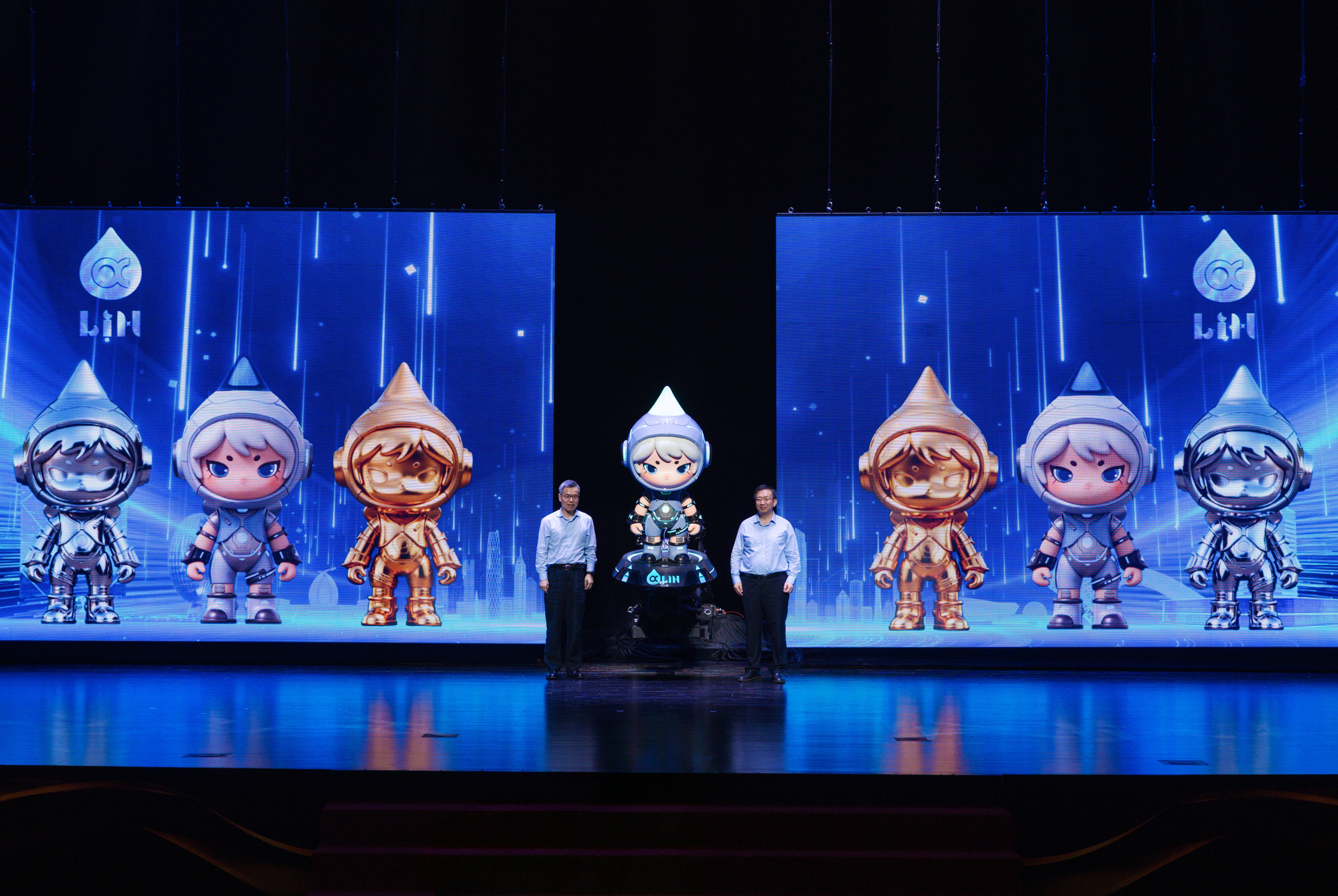 《朤月东方·滴水映月夜》全球形象大使——实验性具身智能体“α-LIN”也同步首发,其“水滴+月相”设计灵感源于临港新片区未来之光,既是数字化符号也是实体潮玩。晚会中它幻化九个分身对应临港新片区九大场景,串联科技与情感主线。其实体手办配专属收藏卡,结合AR技术实现智能互动,开启潮玩新阶段。