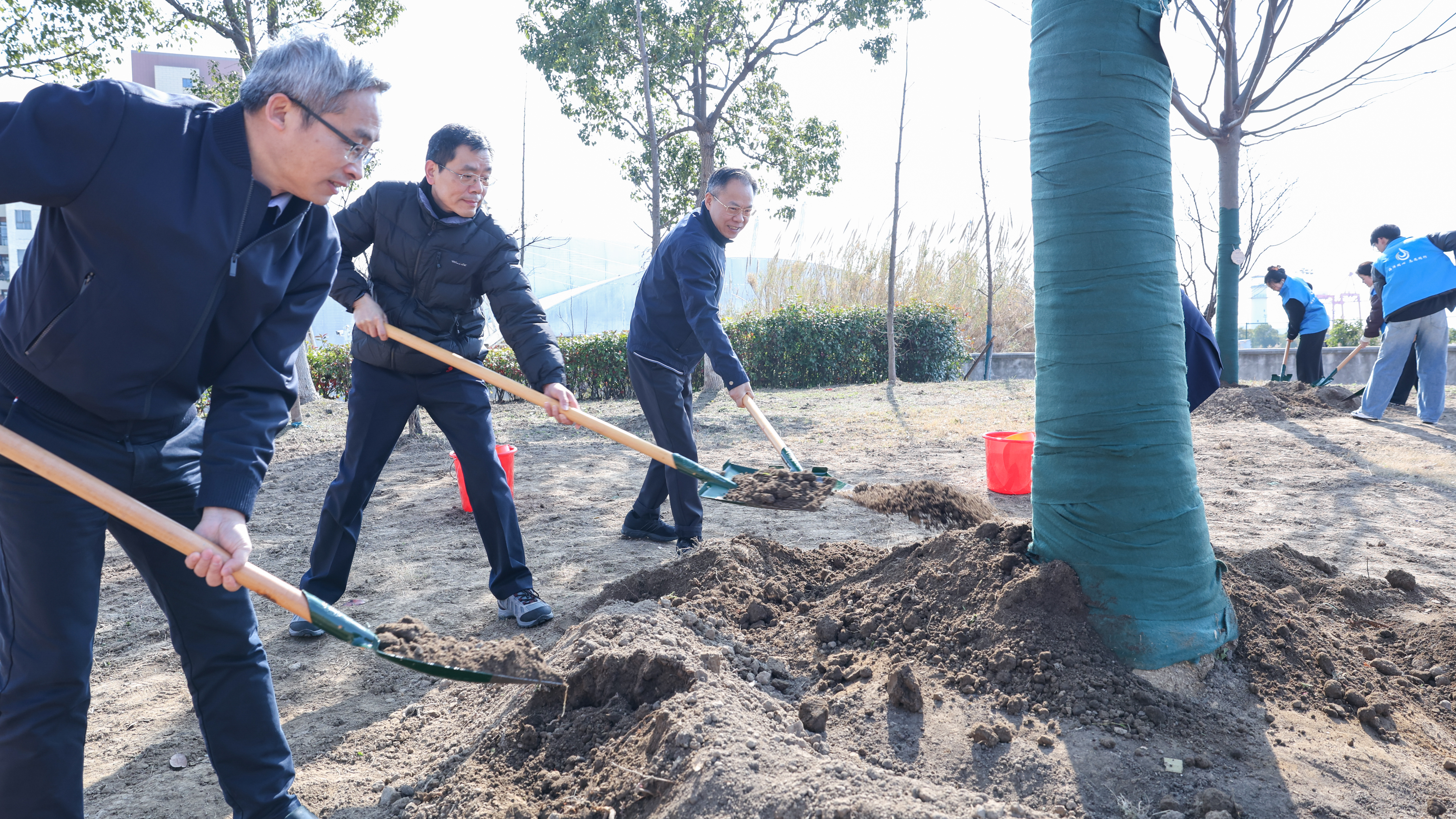 市教卫工作党委委员、市教委副主任赵震,市绿容局二级巡视员吴坚,临港新片区党工委班子相关领导,以及来自临港五所高校的师生代表等120余人共同参与了本次植树活动。