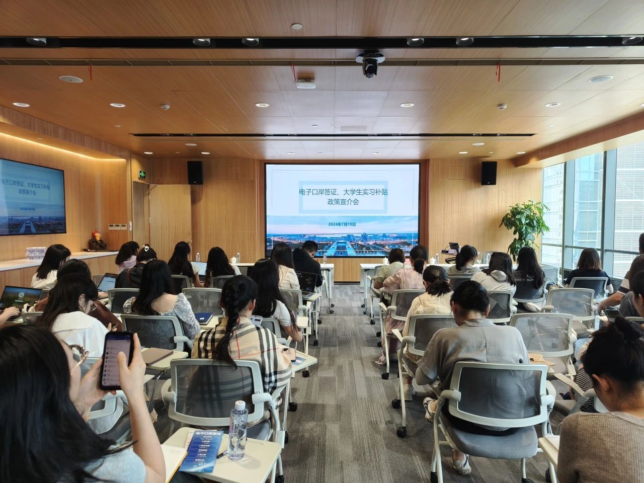 7月19日下午,电子口岸签证政策及大学生实习补贴宣介会在临港新片区国际人才服务港顺利举行,现场共有近90余家新片区用人单位包括特斯拉、新昇半导体、费弥科技等重点单位参加了此次宣介会。