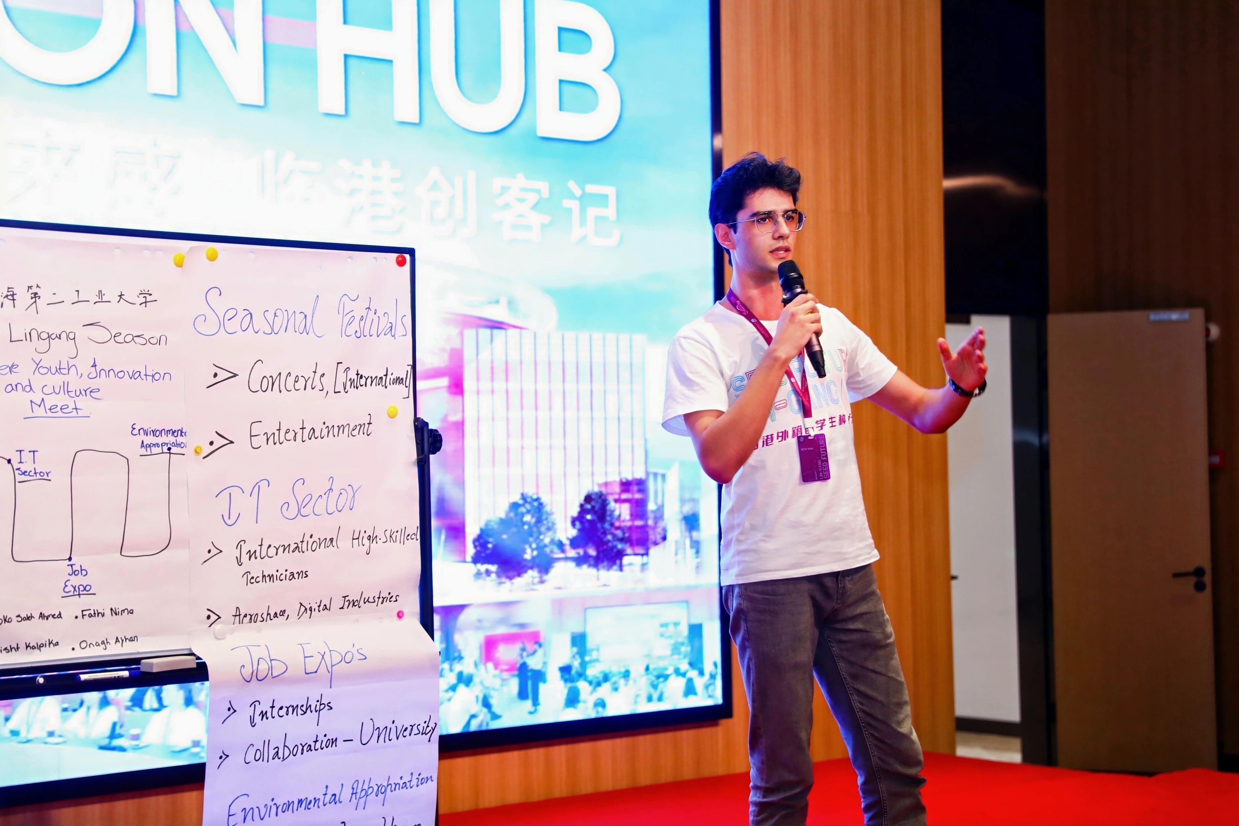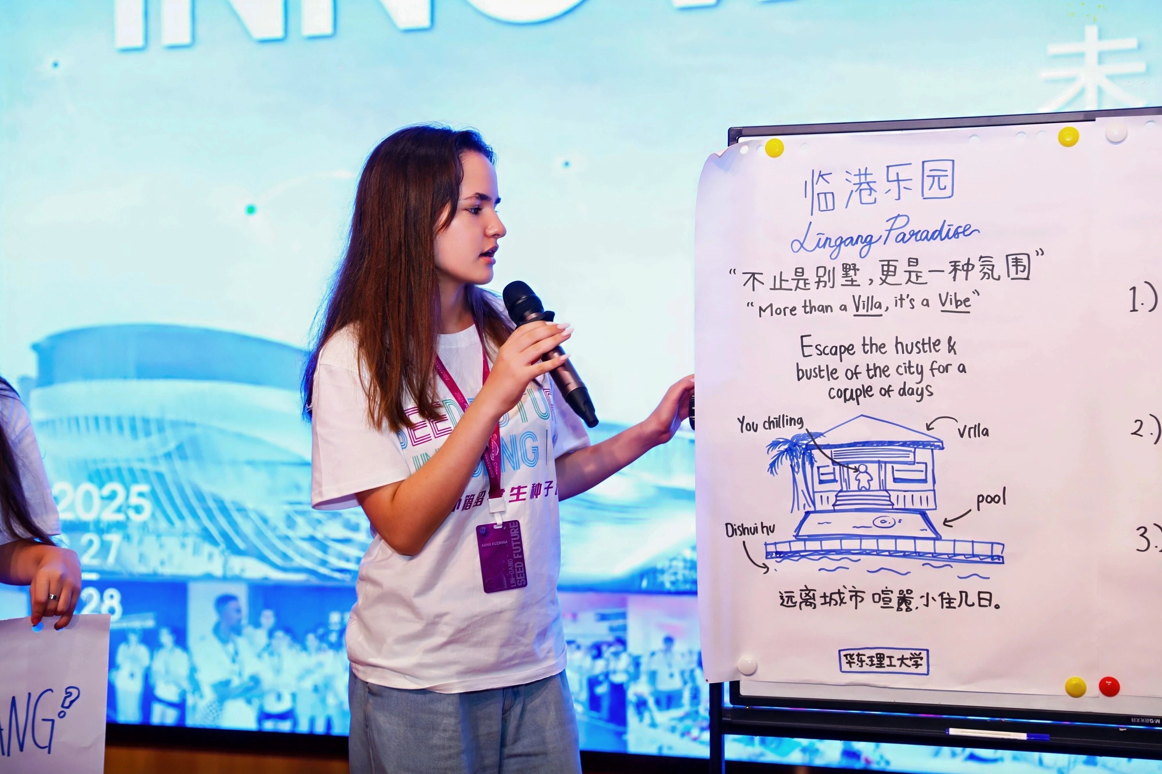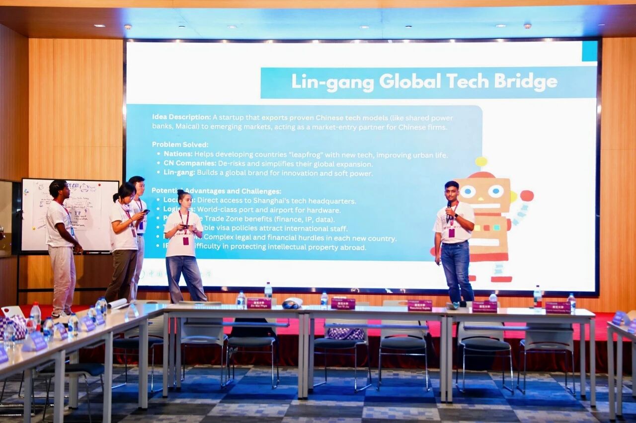 活动尾声的“我在临港话未来”圆桌论坛将气氛推向高潮。留学生们以小组为单位,展开一场别开生面的“创想秀”。他们化身“临时CEO”,围绕临港国际化发展提出多项创新建议,并基于参访中的所见所感,大胆提出各类聚焦青年与文化的创业构想……一个个充满国际视野与年轻态度的创意方案迸发涌现。