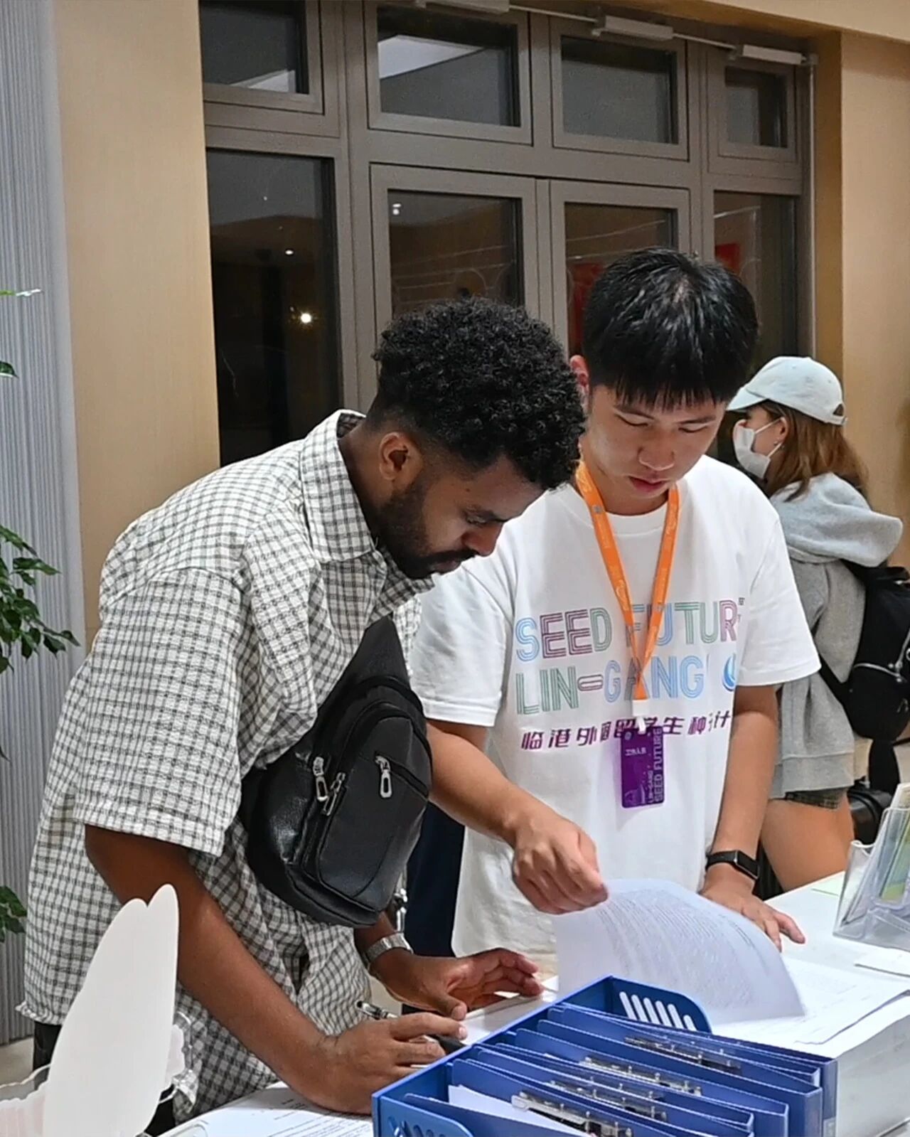 海客空间相关负责人为留学生们孵化器的培育体系,该体系为海外人才提供从初创到成长的全周期服务。成功落户该园区的工加信息CEO高海逵先生结合自身创业经历,分享了临港在生活环境、营商成本及政府支持方面的显著优势,他鼓励留学生们勇敢追梦,将创新的想法付诸实践,并与在座的留学生们积极互动。来自苏州大学的Maradonna Talu Leyn表示:“这里严谨与创意共舞,创业生态是‘活’的、有温度的。”