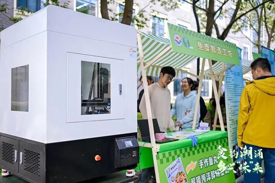 “利用食品学院在冷冻鱼糜制备、鱼丸及双色鱼糕制作方面的特色,我们构建了‘鱼糜加工’的模型,通过这台打印机制作的鱼糜产品,外观立体耐看,高蛋白又无刺,可以直接入口,有助解决吞咽难。”课题组成员、海大食品学院 2024级研究生葛宇琦、同级本科生何秦疆介绍。