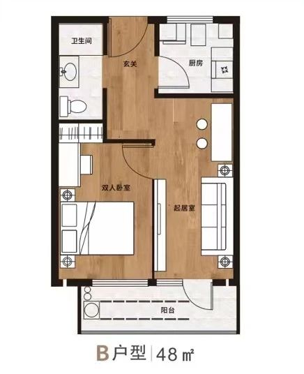一居室户型:面积约51㎡(租金价格约1588元/月-1915元/月)